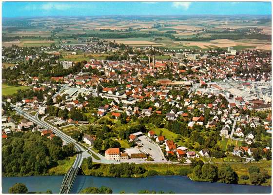 Moosburg mit Isarbrücke, Postkarte 1965