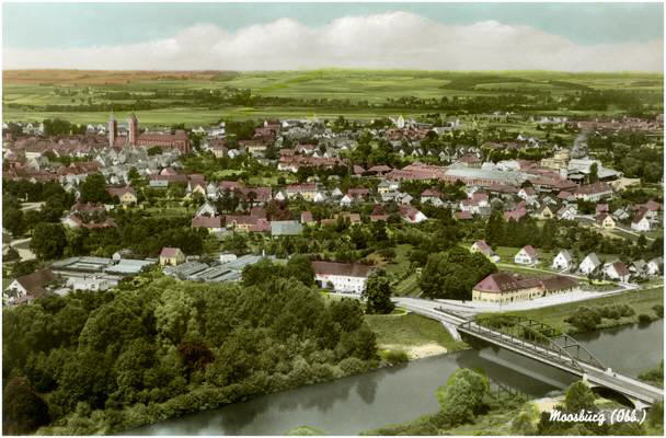 Moosburg mit Isarbrücke, Postkarte Ende der 1950er